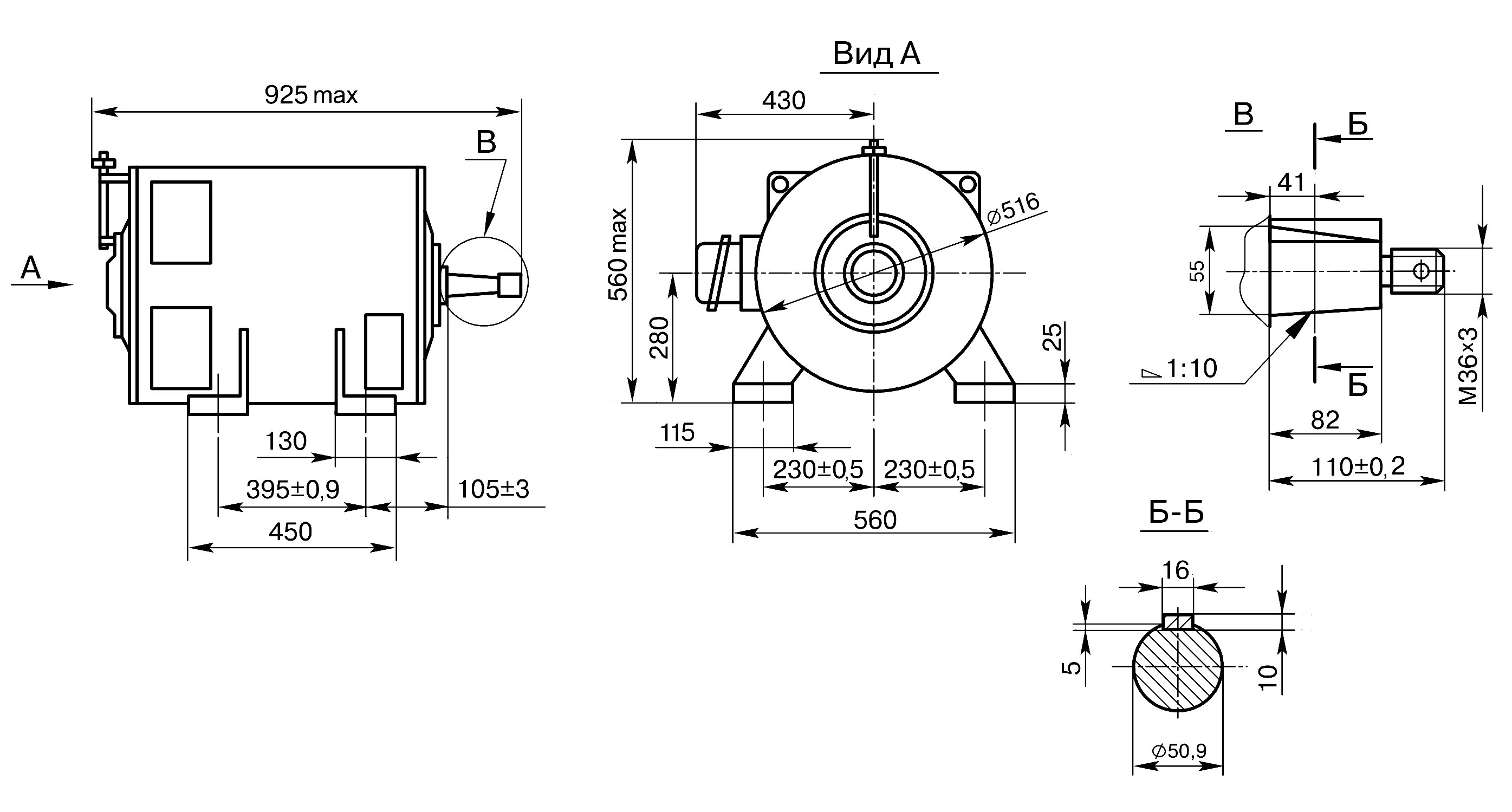 Габаритные и установочные размеры электродвигателей 2П2К, 2П2КМ
