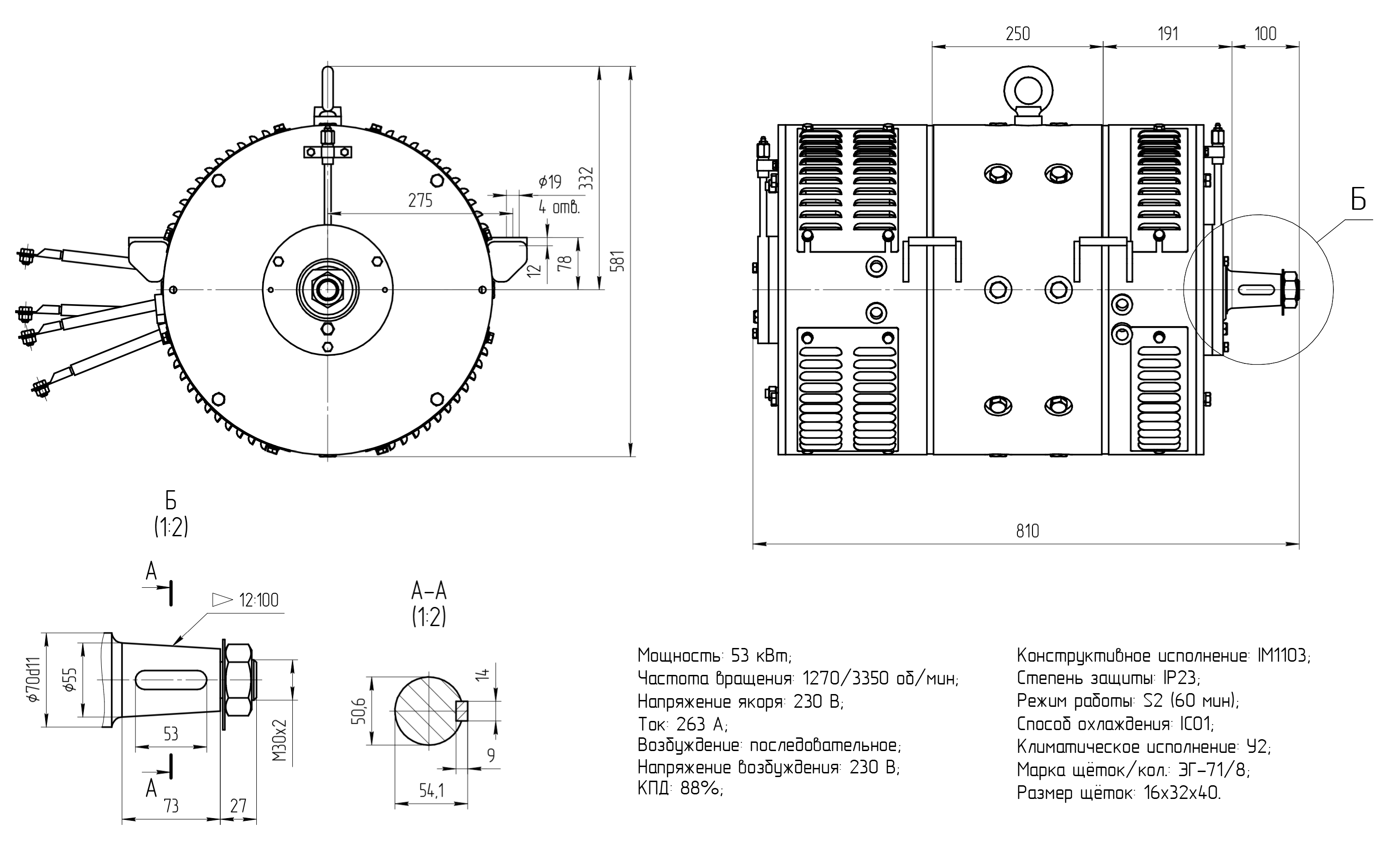ГАБАРИТНЫЕ РАЗМЕРЫ ЭЛЕКТРОДВИГАТЕЛЯ ДК-309